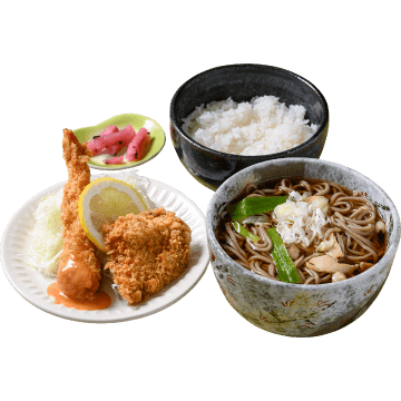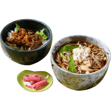 コシのあるお蕎麦のセットも人気!※セットのお蕎麦はかしわ蕎麦です。