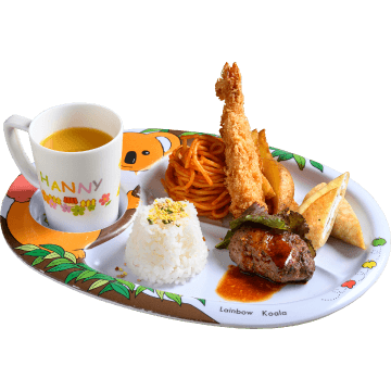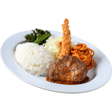 ふわとろオムライスにサクサクのエビフライを添えた贅沢プレート!